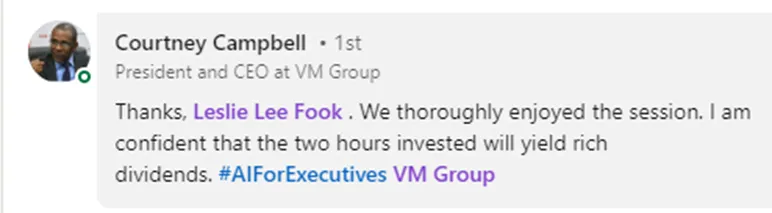 Introducing our exclusive offer tailored specifically for your organization's top-tier leaders: "The AI Leadership Immersion Program." For a limited time, we are offering a special rate of $997 for your 10 most senior managers, directors, and executives to participate in this transformative program.